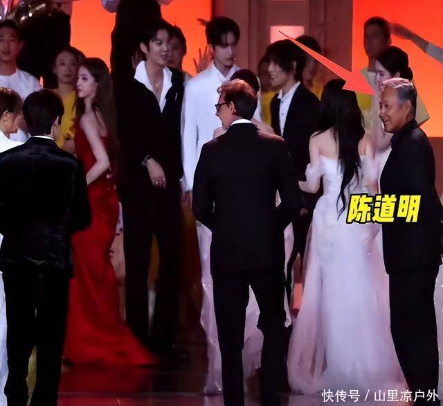 金鸡奖颁奖礼结束后,电影家协会主席陈道明没有立即离场,而是等着新晋影帝。