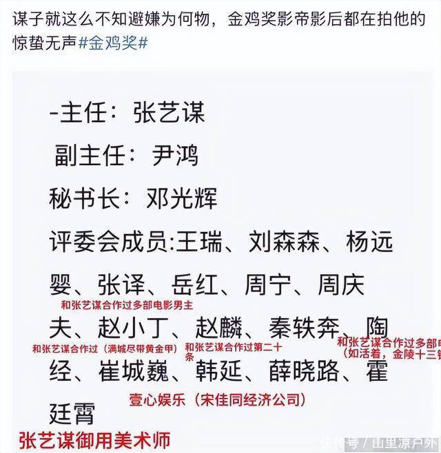 甚至此次金鸡奖的不少评委会成员,以及获奖者,或多或少都跟张艺谋有关系。